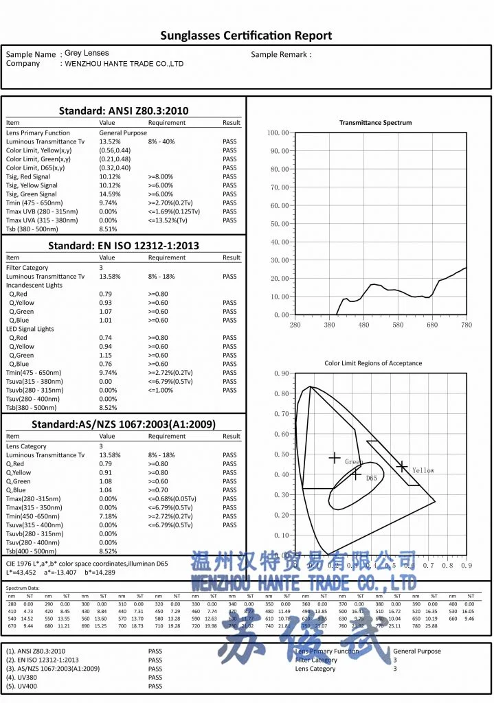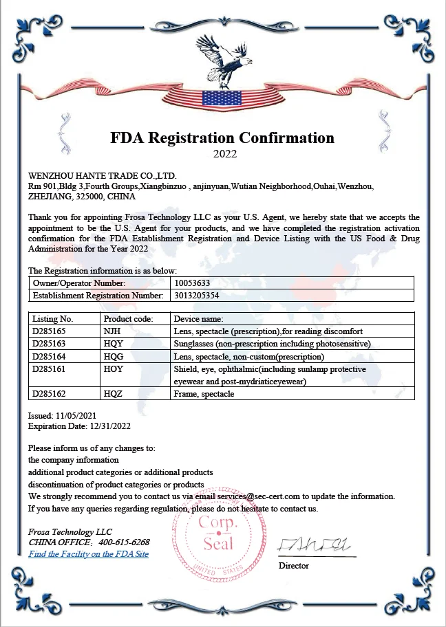 Do your eyewear sunglasses manufacturer enjoy certificates and licenses?