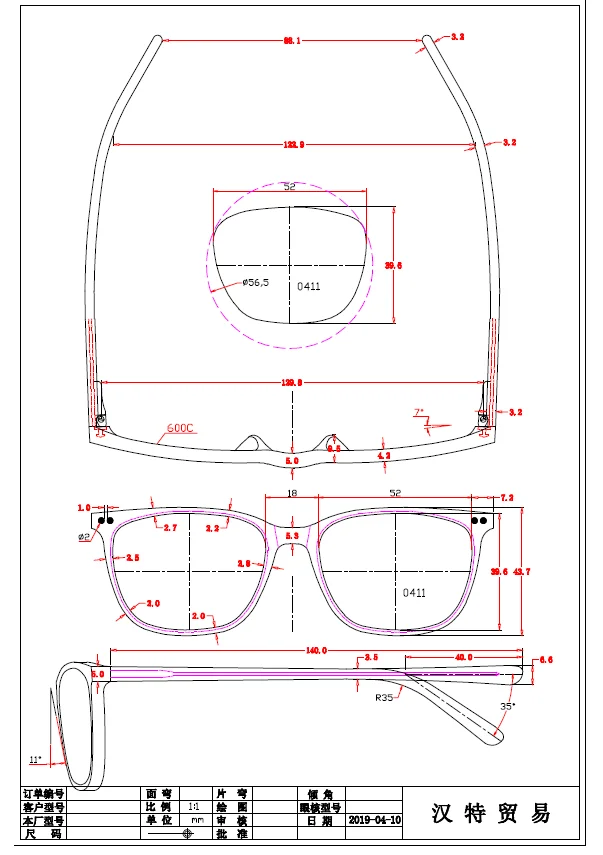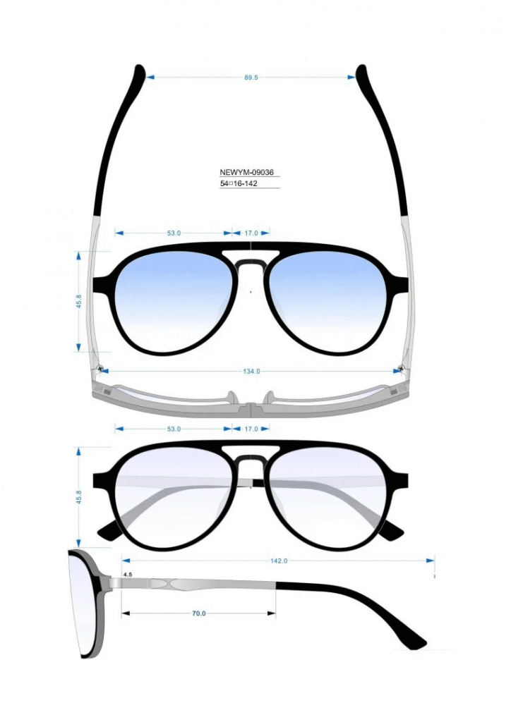 Third, eyewear CAD or 3D drawing
