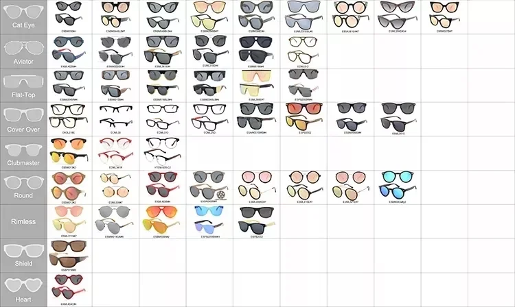 Such as round, rectangular, oval, steampunk, aviator, sporty, double bridge,oversized,vintage etc.